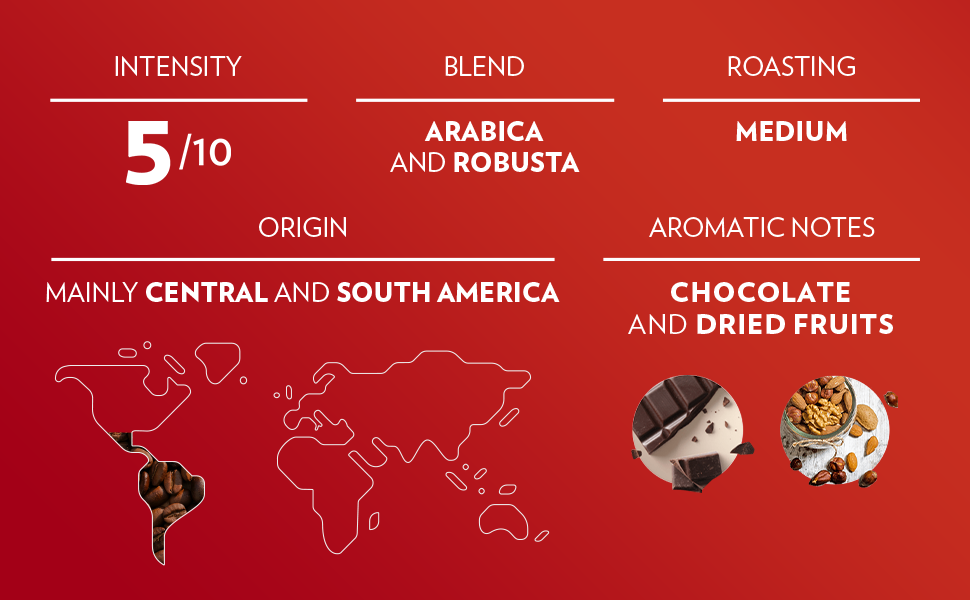 Mieszanka brazylijskiej arabiki i afryka¨½skiej robusty ¨C autentyczny w?oski smak w ka?dej fili?ance!